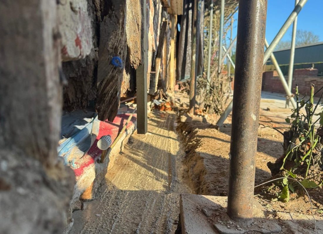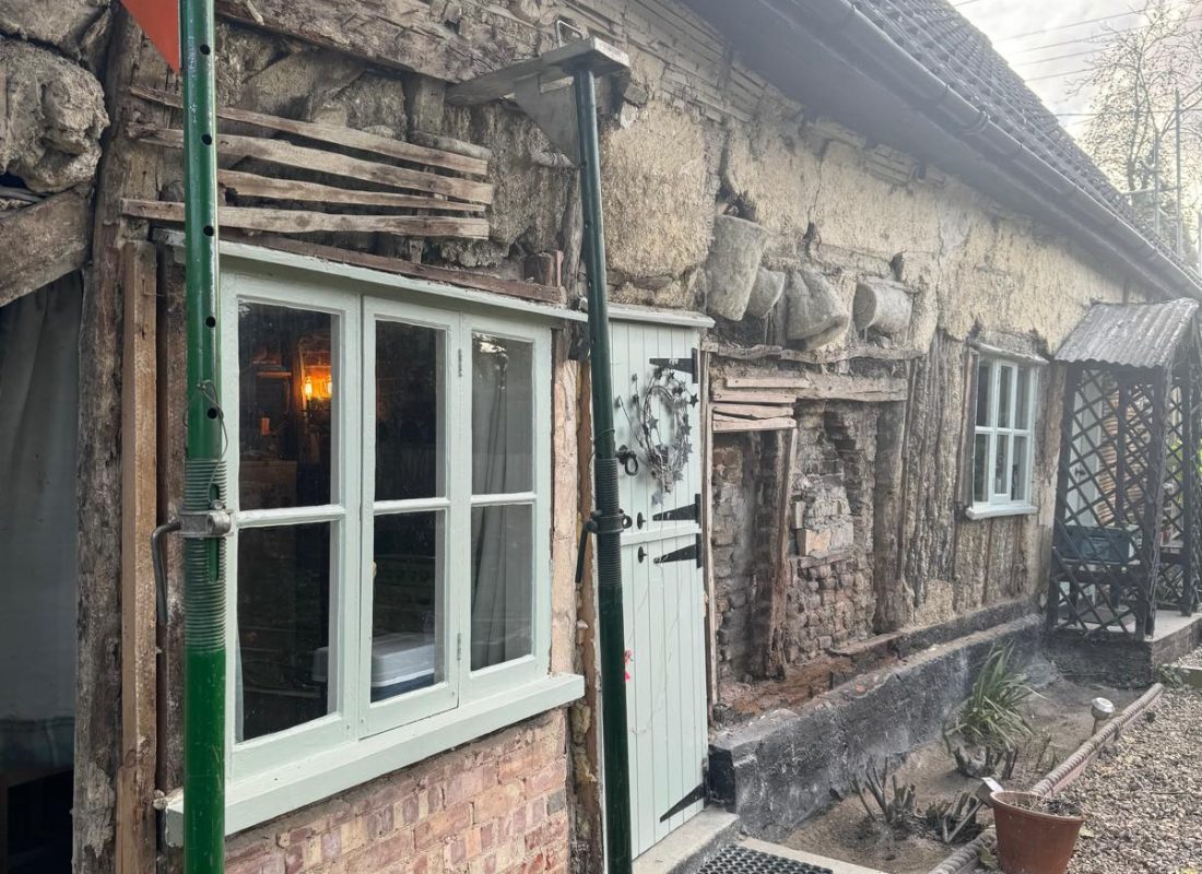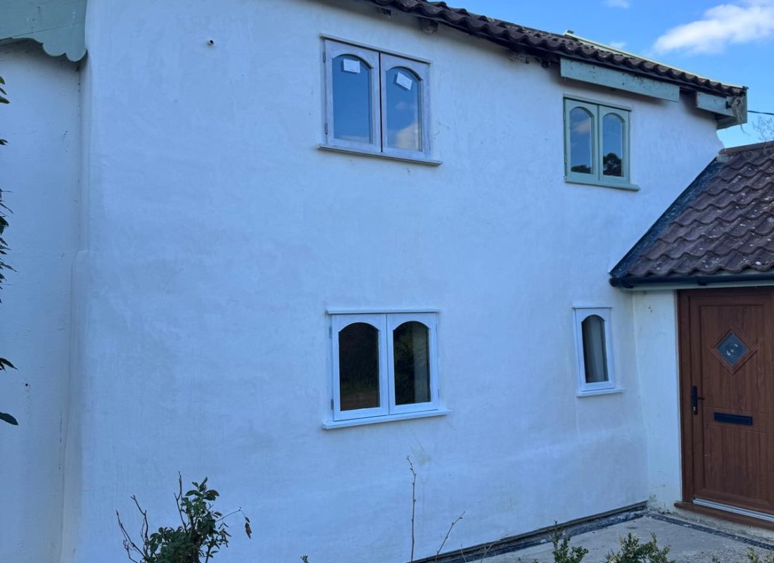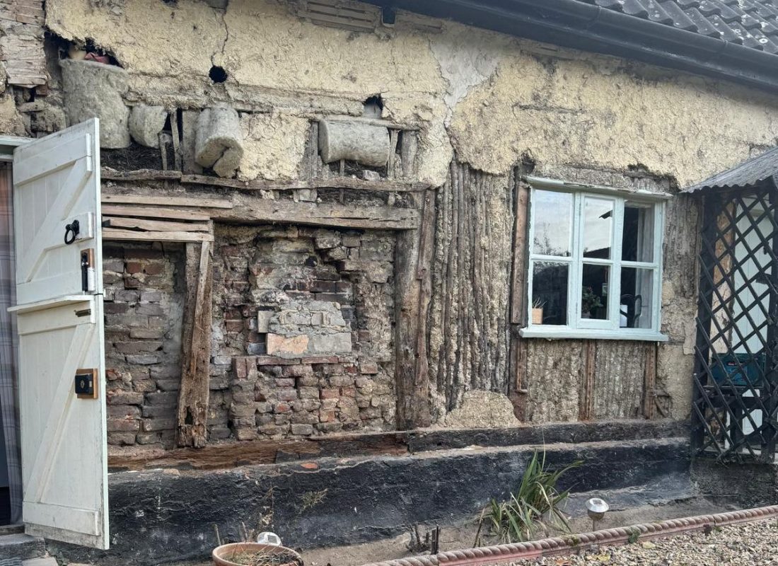 After multiple timber and plinth repairs, the property is now ready to be rendered with two coats of Anglia Lime’s fibre-chalk.